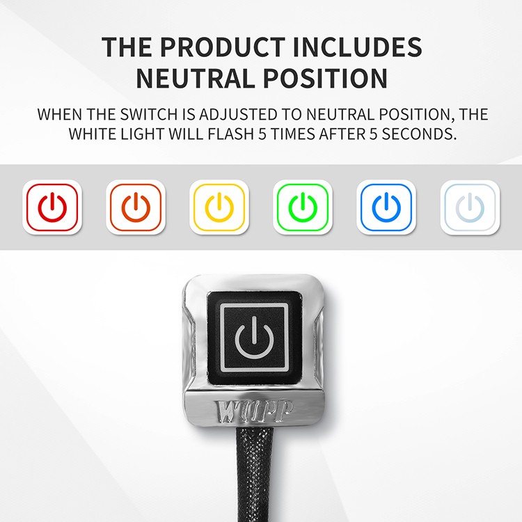 【3】Exclusive neutral design: The product is specially designed with a neutral function. When the switch is adjusted to neutral, the white light will light up for 5 seconds and then flash 5 times to automatically shut down. It will not consume battery power, making it safer and more convenient to use