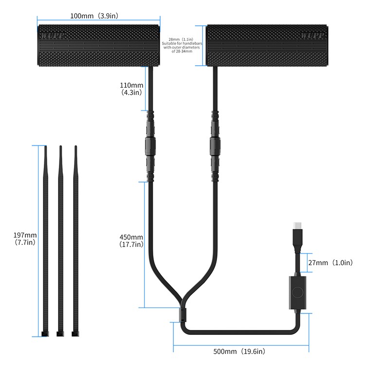 Product description:Experience universal heated grips powered by Type-C PD3.0 protocol, crafted from full silicone for non-destructive installation on 22-28mm handlebars. Fast heating, durable, and ideal for efficient co